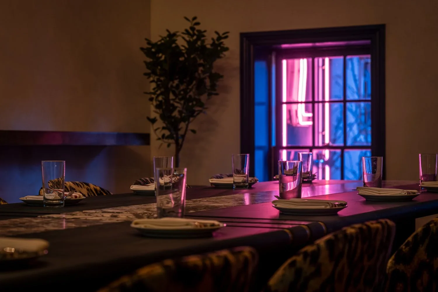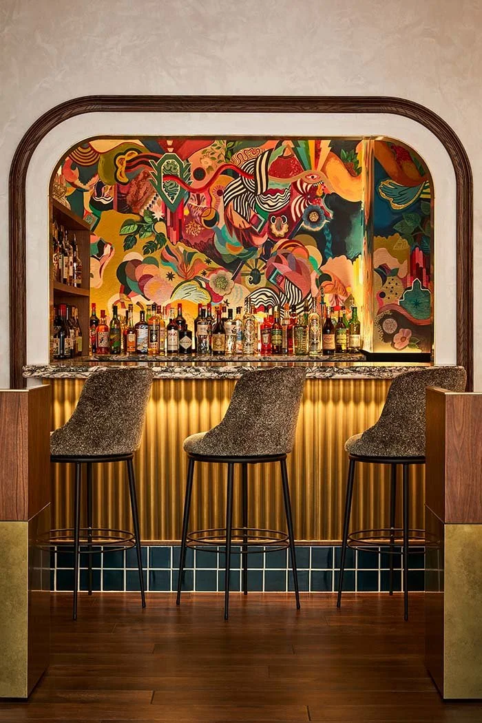 Today, their personal touches can be found throughout Wilder, including hand-painted murals by Nicole and Wilder's curated music selection and playlists. The dining rooms boast eclectic decor, combining patterned Turkish rugs, cheetah print and brass accents across plush teal banquettes, all imagined and designed by Nicole. To unite the team before service, she established a ritual of burning incense and setting intentions.